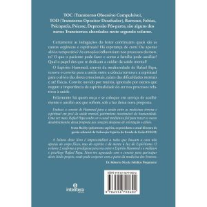 TDAH, Bipolaridade, Esquizofrenia, Borderline, Transtorno do Espectro Autista, Síndrome do Pânico, Ansiedade, Depressão, e tantos outros Transtornos… Quais são as causas orgânicas e espirituais? Há esperança de cura? Ou apenas alívio temporário? As emoções influenciam os processos da mente? O que o paciente pode fazer e como a família pode auxiliar? O Espírito Hammed, através da mediunidade de Rafael Papa, nos oferece novas propostas para estas questões e muito mais ao trazer um olhar de esperança sobre a união entre ciência terrena e espiritual. Apresenta remédios espirituais que podem auxiliar na redução do sofrimento, sem utopias mirabolantes e com base em resultados concretos. Um livro indispensável para os dias atuais em que os pacientes e suas famílias sofrem diante dos desafios de lidar com os desdobramentos desses transtornos no dia a dia. Recomendo o livro “Transtornos Mentais e Remédios Espirituais”. Essa obra única proporciona uma compreensão abrangente dos transtornos mentais, contribuindo para o equilíbrio mental e espiritual, sendo um valioso conteúdo que transcende as barreiras entre medicina e espiritualidade. Dra. Nádia Voga da Rocha (Médica Psiquiatra) Expresso meu apoio ao Rafael Papa pelo trabalho mediúnico responsável e dignificante, que soube ser humilde para superar limitações a fim de que Hammed pudesse trazer essa obra primorosa através dele. Ivana Raisky (palestrante espírita, ex-presidente e atual diretora de gestão editorial da Federação Espírita do Estado de Goiás-FEEGO)