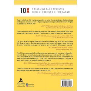Por definição, o sucesso extraordinário é aquele que resulta de ações que vão além da média, do que tudo mundo faz. Se você quer atingi-lo, não pode seguir o mesmo caminho que as outras pessoas e se acostumar com a mediocridade. Precisa eliminar o fator “sorte” da sua equação. “10X” pode lhe ensinar a fazer isso! O sucesso é seu direito, dever e responsabilidade, e este livro oferece o passo-a-passo para chegar até ele! Com o “10X”, você vai descobrir qual o nível de esforço necessário para obter o sucesso que deseja e como manter essa energia ao longo de sua vida. A maioria das pessoas quer ser bem-sucedida e até tem ótimas ideias, mas não age de acordo para alcançar os seus sonhos extraordinários. Ao ler este livro, você vai acabar com seus medos, fortalecer sua fé em si mesmo, parar de procrastinar e estabelecer o seu objetivo de vida. Como resultado, ele também fará com que você se destaque no mercado de trabalho – e isso acontecerá porque você saberá fazer o que os outros se recusam. Pare de pensar pequeno e comece a almejar o que há de melhor e mais extraordinário – para todas as áreas da sua vida. O livro “10X” ensina a linha de pensamento das pessoas de sucesso: almeje dez vezes mais do que você tem agora – e, se você não alcançar, ainda assim estará na frente do que se tivesse mantido seu status quo.