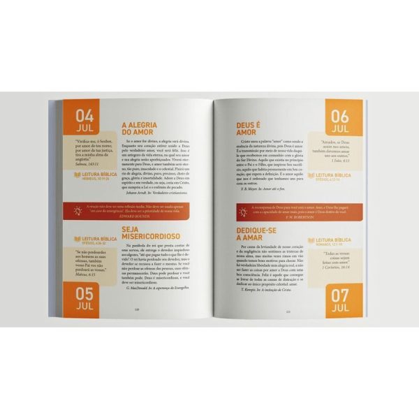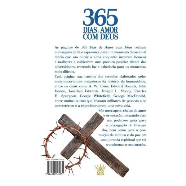 Neste livro devocional diário, os leitores terão trechos de célebres oradores cujas pregações modificaram a vida de milhões de seres humanos, adaptações de sermões que ainda hoje são capazes de proporcionar verdadeira vitória para todos os problemas da vida. Jesus disse que: “Nem só de pão viverá o homem, mas de toda palavra que procede da boca de Deus” (Mateus 4:4), em clara demonstração de que as adversidades podem ser superadas com o alento divinamente inspirado por leituras devocionais diárias, as quais estão disponibilizadas em 365 Dias de Amor com Deus.