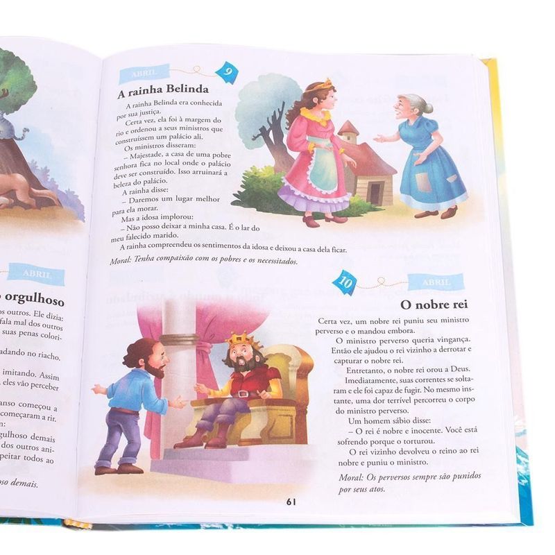Este livro foi elaborado tendo em mente o número de dias que compõem um calendário anual. Nele, há 365 histórias com moral belamente ilustradas, para oferecer uma fábula por dia aos leitores. Um livro encantador, que poderá ser usado para introduzir valores morais nas crianças ajudando, assim, a formar seu caráter.