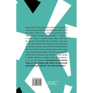 Pierre Bourdieu analisa a dominação masculina que sobrevive na sociedade atual, denuncia um modo de pensar pautado pelas dicotomias e oposições, e faz o leitor refletir sobre o tema com olhar crítico indispensável. O autor inverte a relação causa-efeito, afirmando que essa dominação não é biológica, mas uma construção arbitrária do biológico que fundamenta as divisões sexuais aparentemente espontâneas; a biologia e o corpo seriam espaços onde as desigualdades entre os sexos seriam naturalizadas. Por fim, recorre à história das mulheres para mostrar que há mecanismos que podem contribuir para a exclusão feminina, provando que Família, Escola, Igreja e Estado ratificam a ordem social preponderante. A dominação masculina reforça a noção de uma dominação incrustada nos esquemas de pensamento, nos corpos e no que mais for alvo dos símbolos e da linguagem; ou seja, tudo.