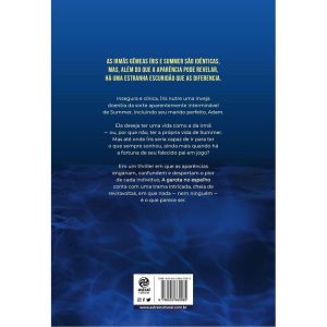 “Um livro com uma trama incrível… fascinante.”, The New York Times Book Review As irmãs gêmeas Íris e Summer são idênticas, mas, além do que a aparência pode revelar, há uma estranha escuridão que as diferencia. Insegura e cínica, Íris nutre uma doentia inveja da sorte aparentemente interminável de Summer, incluindo seu marido perfeito, Adam. Íris deseja ter uma vida como a da irmã – ou, por que não, ter a própria vida da irmã. Mas até onde Íris seria capaz de ir para ter o que sempre sonhou, ainda mais quando há a fortuna de seu falecido pai em jogo? Em um thriller em que as aparências enganam, confundem e despertam o pior de cada indivíduo, A garota no espelho conta com uma trama intricada, cheia de reviravoltas, em que nada – nem ninguém – é o que parece ser.