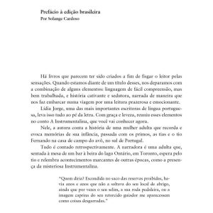 Um conto breve faz um sonho longe, logo avisa a epígrafe deste livro da premiada escritora portuguesa Lídia Jorge. Ela conduz o leitor habilmente por esta narrativa em primeira pessoa que trata da delicada relação entre um tio e sua sobrinha, a partir de um encontro, ocorrido muitos anos mais tarde, à beira do Lago Ontário, no Canadá. A personalidade irreverente e rebelde do mais velho arrebata a atenção da criança observadora e carente de afeto que crescia na década de 60 ao sul de Portugal. As lembranças dos seus encontros num campo de margaridas, tendo por fundo uma bicicleta como único veículo de libertação, constituem a matéria-prima deste conto cujo título toma por nome a alcunha desprestigiante que haviam dado a esse “instrumento” – A Instrumentalina. O texto foi editado pela primeira vez pelas Publicações Dom Quixote, em 1992, e foi traduzido para vários idiomas.