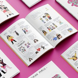 É uma História em Quadrinhos super legal que aborda com muito humor quais são as principais ferramentas e estratégias para instruir FEMINISTAS – DE TODES ES GÊNERES E IDADES. A autora explica, de uma forma muito simples e direta, o que significa consentimento, identidade de gênero, sexismo, feminismo, incluindo elementos recentes, como interseccionalidade, construindo um “compacto manual de autodefesa feminista”. O livro está dividido em capítulos temáticos. E pelos seus desenhos simples e cores atraentes, acompanhamos a jornada de mulheres diversas que nos ensinam e fazem pensar sobre nossas relações com o próprio corpo e a sociedade.