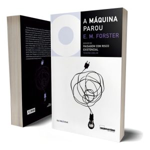 Num futuro indeterminado e numa Terra ecologicamente arrasada onde as pessoas vivem em um mundo subterrâneo servido e controlado por uma Máquina, um jovem busca uma saída. O enredo é simples, mas as cenas que o articulam, escritas na primeira década do século 20, são fortes em premonição tecnológica e carregadas de arrepiante ameaça. E. M. Forster, autor de conhecidos romances como Passagem para a Índia, Um quarto com vista e Maurice, transformados em filmes de sucesso, foi um dos autores mais destacados da literatura britânica do século 20, várias vezes cogitado para o Prêmio Nobel. Em 1909, Forster, publicou a máquina parou: lida hoje, esta pequena novela inédita no Brasil revela todo seu poder de análise das relações entre a humanidade e a tecnologia em uma era em que, como advertiu Walter Benjamin, a humanidade se prepara para sobreviver à civilização. Já em ‘Paisagem com risco existencial’, o escritor e ensaísta Teixeira Coelho destaca os pressupostos e as consequências desta peça literária para a compreensão do tempo presente. Num futuro indeterminado que, na perspectiva de hoje, é daqui a pouco e mesmo já, as pessoas se comunicam por meio de tablets com som e vídeo, recebem em seus próprios quartos-casa tudo de que precisam — de comida a música, além de informação fornecida por um aparelho equivalente ao televisor — e não gostam de contatos físicos. Vivem subterraneamente e não gostam da superfície da Terra, que nada lhes diz. Tudo gira ao redor de uma Máquina central. A máquina parou é um conto do autor dos romances Passagem para a Índia, Um quarto com vista e Maurice, entre outros, inicialmente publicado em novembro de 1909 na The Oxford and Cambridge Review. Em 1973, três anos após a morte do autor, foi incluída no volume II da coletânea The Science Fiction Hall of Fame. No Brasil, passou despercebida até este momento. Em prefácio a seu Collected Short Stories, de 1947, Forster escreveu que a máquina parou havia sido escrito como reação aos ‘paraísos’ da ficção científica de H. G. Wells. Com isso dizia não concordar com a visão otimista do autor de a guerra dos mundos, de 1898 e que provocou a conhecida celeuma na emissão radiofônica de Orson Welles em 1938. Nem toda as obras de ficção científica de H. G. Wells, que cunhou a expressão ‘máquina do tempo’, terminavam bem mas várias, sim — como a mesma Guerra dos mundos. Forster preocupava-se com a submissão do homem à tecnologia, ainda mais forte do que a ascendência da máquina sobre o homem, tema de seu conto. Catorze anos depois do primeiro livro de Wells (A máquina do tempo, 1895), Forster entendeu que a dependência humana da tecnologia punha em risco a existência da humanidade real. As duas guerras mundiais que se seguiriam, em 1914 e 1939, iriam lhe dar razão. Mas, seu cenário foi muito mais longe e hoje se vê de modo nítido como a imaginação de Forster foi capaz de antecipar o modo de vida tecnológico destes dias atuais do século 21. O conto é perfeito na previsão de produtos, comportamentos e reações. E preocupante. No posfácio, o escritor e ensaísta Teixeira Coelho extrai as consequências atuais da situação imaginada por Forster e do aumento do risco existencial que acompanha os benefícios advindos do crescimento exponencial da tecnologia da computação.