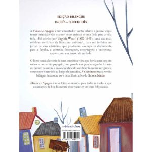 A Viúva e o Papagaio é um encantador conto infantil e juvenil, cujos temas principais são o amor pelos animais e uma lição para a vida toda. Foi escrito por Virginia Woolf (1882-1941), uma das mais célebres escritoras da literatura universal, para ser incluído no jornal de seus sobrinhos, que produziam exemplares diariamente para a família, e continha ilustrações, reportagens e entrevistas, quase como um jornal de verdade. O livro conta a história de uma simpática viúva que herda uma casa em ruínas e um astuto papagaio, que guarda um grande segredo. Por meio do talento da autora e sua capacidade de construir histórias intrigantes, o suspense é mantido ao longo da narrativa. A nVersinhos traz a versão bilíngue dessa obra com belas ilustrações de Simone Matias. A Viúva e o Papagaio é uma leitura essencial para todas as idades e que os amantes da boa literatura deveriam ter em suas bibliotecas.