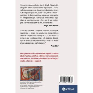 Neste livro, a judeidade de Freud não é tratada como uma suposta essência imutável de uma etnia, mas sim como uma construção, um devir-judeu que pode ser depreendido ao se estudar a própria descoberta da psicanálise. A problemática relação entre Freud e o judaísmo foi objeto de estudos em todo o mundo. Em A vocação do exílio, a psicanalista Betty B. Fuks argumenta que a criação da psicanálise está imbricada com certa ideia de judeidade que, de um lado, se expressa no exílio do povo judeu, seu nomadismo, sua errância; e, de outro, no movimento erradio da letra, presente na própria interpretação contínua do texto sagrado. Publicado pela primeira vez em 2000 sob o título Freud e a judeidade, com edições em inglês, francês e espanhol e celebrado internacionalmente como um marco nos debates sobre o tema, esta segunda edição foi revista e ampliada pela autora. Através de uma prosa tão clara e elegante, Fuks demonstra que os traços de exílio e de êxodo inscritos na história do povo judeu e a prática de leitura-escritura infinita do “Livro dos livros” têm um papel essencial na descoberta freudiana do inconsciente. “Esperemos que o importantíssimo livro de Betty B. Fuks seja lido pelo grande público e possa devolver a psicanálise à sua vocação de pensamento da diferença, do não-idêntico, do exílio. E que possa ajudar-nos, judeus e não-judeus, a refazer a experiência da dupla identidade, sem a qual a psicanálise não teria podido surgir, e sem a qual perderíamos a capacidade de comunicar-nos com o Outro fora de nós, o estrangeiro, e com o Outro dentro de nós, o inconsciente.” — Sergio Paulo Rouanet “Numa era que tende a respostas imediatas e satisfações instantâneas – sejam elas terapêuticas, farmacológicas, científicas, religiosas ou ideológicas –, a psicanálise se afirma em sua posição marginal e anti-idolátra. Uma posição de exílio que, como defende Betty B. Fuks, é ao mesmo tempo sua natureza e sua força maior.” — Paola Mieli