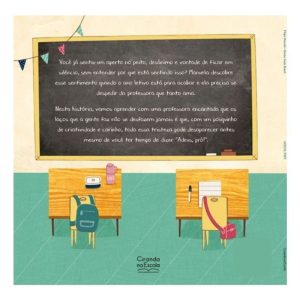 Você já sentiu um aperto no peito, desânimo e vontade de ficar em silêncio, sem entender por que está sentindo isso? Manuela descobre esse sentimento quando o ano letivo está para acabar e ela precisa se despedir da professora que tanto ama. Nesta história, vamos aprender com uma professora encantada que os laços que a gente faz não se desfazem jamais e que, com um pouquinho de criatividade e carinho, toda essa tristeza pode desaparecer antes mesmo de você ter tempo de dizer “Adeus, prô!”.