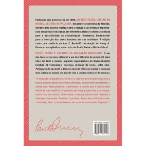 Paulo Freire e Donaldo Macedo em crítica rigorosa e inovadora às propostas tradicionais de alfabetização A leitura do mundo precede a leitura da palavra, da mesma maneira que o ato de ler palavras implica necessariamente uma contínua releitura do mundo. Partindo dessa premissa básica, Paulo Freire, em colaboração com Donaldo Macedo, utiliza em Alfabetização: Leitura do mundo, leitura da palavra sua experiência pedagógica em Guiné-Bissau para dissecar o ato da leitura em todas as suas dimensões. Seu objetivo: desvelar e difundir pressupostos teóricos e subsídios contidos em um dos seus principais projetos pedagógicos, pelo qual e no qual investiu dedicação e empenho ao longo de toda a vida – a alfabetização de jovens e adultos das camadas populares, a quem fora negado o direito da alfabetização no momento e tempo adequados. Alfabetização: Leitura do mundo, leitura da palavra tece uma crítica rigorosa e inovadora às propostas tradicionais de alfabetização desenvolvidas em nosso país e nos Estados Unidos, as quais, na maioria das vezes, buscam o aprendizado da língua oficial pelo chamado padrão culto. Considerando a alfabetização um processo que deve ao mesmo tempo resgatar e recriar a experiência vivida pelo alfabetizando, Paulo Freire teoriza e pratica uma alfabetização crítica e libertadora, que instrumentaliza a classe oprimida, para que possa alcançar a reapropriação de sua história pela construção coletiva do conhecimento, reabilitando sua capacidade de intervir nas transformações de seu contexto social. A alfabetização assim proposta tem, na linguagem utilizada pelo alfabetizando, um instrumento de expressão de seus anseios, necessidades, medos, sonhos e aspirações. E isso torna Alfabetização: Leitura do mundo, leitura da palavra um livro cada vez mais atual. A edição conta com prefácio de Ann E. Berthoff, introdução de Henry A. Giroux e, no apêndice, uma carta de Paulo Freire a Mário Cabral. * Em 1963, em Angicos, interior do Rio Grande do Norte, trezentos trabalhadores rurais foram alfabetizados em apenas 40 horas, pelo método proposto por Paulo Freire. Esse foi o resultado do projeto-piloto do que seria o Programa Nacional de Alfabetização do governo de João Goulart, presidente que viria a ser deposto em março de 1964. Em outubro desse mesmo ano, Freire deixou o Brasil para proteger a própria vida. Apenas voltou a visitar o país em 1979, com a abertura democrática. Ao longo de sua história, Paulo Freire recebeu mais de cem títulos de doutor honoris causa, de diversas universidades nacionais e estrangeiras, além de inúmeros prêmios, como Educação para a Paz, da Unesco, e Ordem do Mérito Cultural, do governo brasileiro. Integra o International Adult and Continuing Education Hall of Fame e o Reading Hall of Fame. * “O educador progressista rejeita os valores dominantes impostos à escola porque possui um sonho diferente, porque quer transformar o status quo. Naturalmente, transformar o status quo é muito mais difícil do que mantê-lo. A questão que você propôs tem a ver exatamente com essa teoria. Como disse, o espaço educacional reproduz a ideologia dominante. Contudo, é possível, dentro das instituições educacionais, atuar contrariamente aos valores dominantes impostos.”