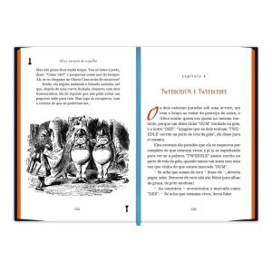 Publicado há mais de 150 anos, Alice no País das Maravilhas e Alice através do Espelho se consagraram com duas das maiores obras de literatura infantojuvenil inglesa, conquistando leitores por todo o mundo e ganhando diversas adaptações para o teatro e cinema. O livro conta a jornada de uma jovem chamada Alice, que, ao cair em uma toca de coelho, entra em um mundo surreal e mágico, chamado País das Maravilhas. Lá, ela terá que enfrentar aventuras inusitadas, como: chá da tarde com um Chapeleiro Maluco, fugir de uma Rainha de Copas impiedosa, lidar com um Gato Risonho, e outras situações psicodélicas e cativantes. Lewis Carroll criou uma narrativa sobre o amadurecimento, a amizade e o poder da imaginação, com personagens e cenários fascinantes.