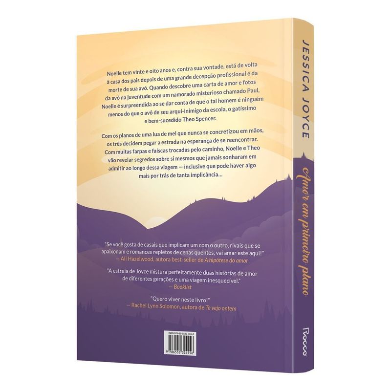 Aos vinte e oito anos, Noelle Shepard está desempregada, desiludida e morando com os pais, depois de perder a avó, sua grande inspiração e melhor amiga. Ao explorar algumas caixas antigas, ela encontra fotos e uma velha carta de amor que sua avó recebeu de um homem chamado Paul (que não é seu avô) e posta um vídeo no TikTok em busca do namorado misterioso. O que ela não esperava, porém, é que Paul fosse o avô de seu ex-arqui-inimigo, o bem-sucedido Theo Spencer. Noelle se recusa a permitir que os irritantes sucessos profissionais de Theo — e o sorriso sexy e a barriga de tanquinho dele — a impeçam de saber mais sobre o passado da avó. Quando descobre que o plano dos dois de se casarem em segredo foi interrompido, Noelle decide fazer a viagem de lua de mel que eles planejaram, mas nunca colocaram em prática. Só tem um porém: Paul quer ir também… e insiste que Theo se junte a eles. Será um milagre se eles conseguirem chegar ao final dessa viagem sem que Noelle jogue Theo para fora do carro em movimento — ou da cama que os dois acabam tendo que dividir. Conforme os quilômetros se passam, a tensão entre eles só vai esquentando… até que os segredos de ambos colocam em risco a frágil trégua estabelecida, e toda a esperança de que algo mais aconteça entre eles pode acabar indo por água abaixo. Neste romance de estreia sexy, divertido e emocionante, Jessica Joyce cria um casal com uma química explosiva, um tocante tributo ao amor entre netos e avós e uma reflexão do que significa ter sucesso no início da vida adulta. Amor em primeiro plano é uma viagem inesquecível, cheia de emoção, paixão e risadas, que vai deixar seu coração quentinho. CONTEÚDO ADULTO.