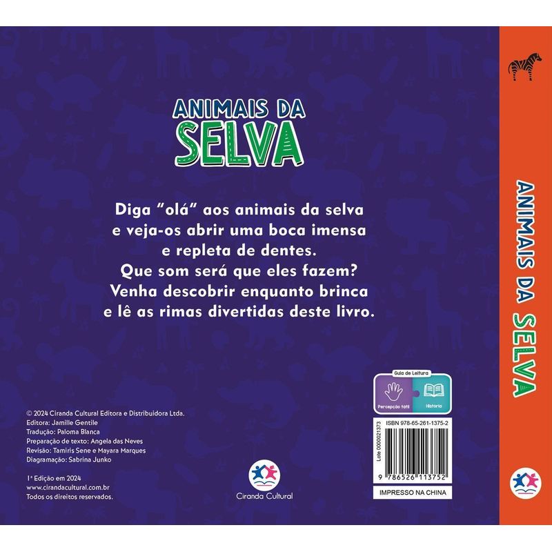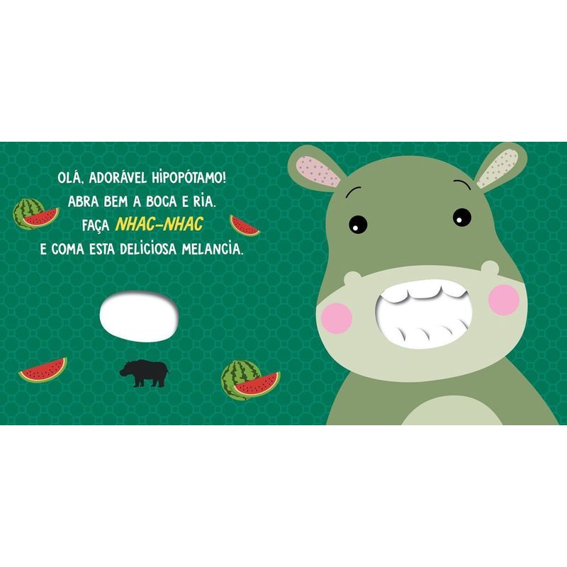 Diga “olá” aos animais da selva e veja-os abrir uma boca imensa e repleta de dentes. Que som será que eles fazem? Venha descobrir enquanto brinca e lê as rimas divertidas deste livro.