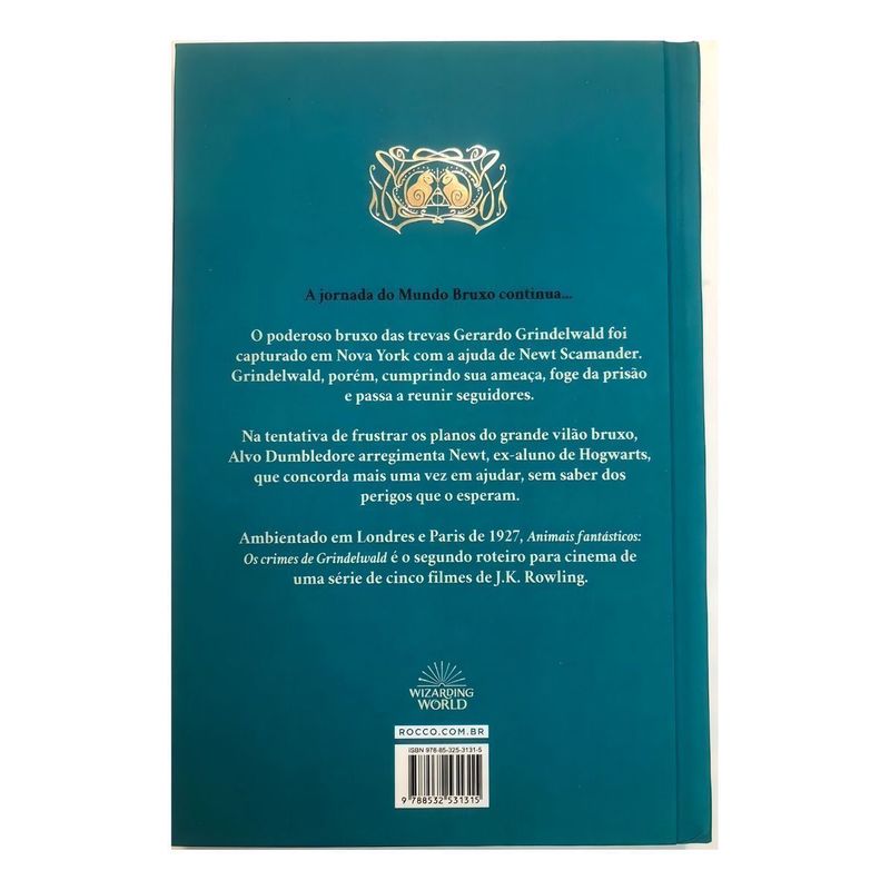 No final de Animais Fantásticos e Onde Habitam, o poderoso bruxo das trevas Gerardo Grindelwald foi capturado em Nova York com a ajuda de Newt Scamander. Mas Grindelwald, cumprindo sua ameaça, foge da prisão e passa a reunir seguidores, cuja maioria não suspeita de suas verdadeiras intenções: criar bruxos puro-sangue para governar todos os seres não mágicos. Tentando frustrar os planos de Grindelwald, Alvo Dumbledore arregimenta Newt, ex-aluno de Hogwarts, que concorda em ajudar mais uma vez, sem saber dos perigos que tem pela frente. Limites serão traçados e o amor e a lealdade serão testados, até entre os amigos e familiares mais fiéis e confiáveis, em um mundo bruxo cada vez mais dividido. Segundo roteiro original assinado por J.K. Rowling, com design de capa do estúdio MinaLima, Animais Fantásticos: os crimes de Grindelwald complementa os acontecimentos que ajudaram a dar forma ao Mundo Bruxo, com algumas referências surpreendentes às histórias de Harry Potter que deliciarão os fãs dos livros e filmes da série.