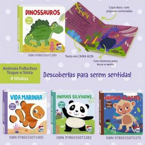 Vamos explorar o mundo animal com texturas para tocar e sentir? Junte-se à bicharada e divirta-se nesta charmosa coleção interativa.