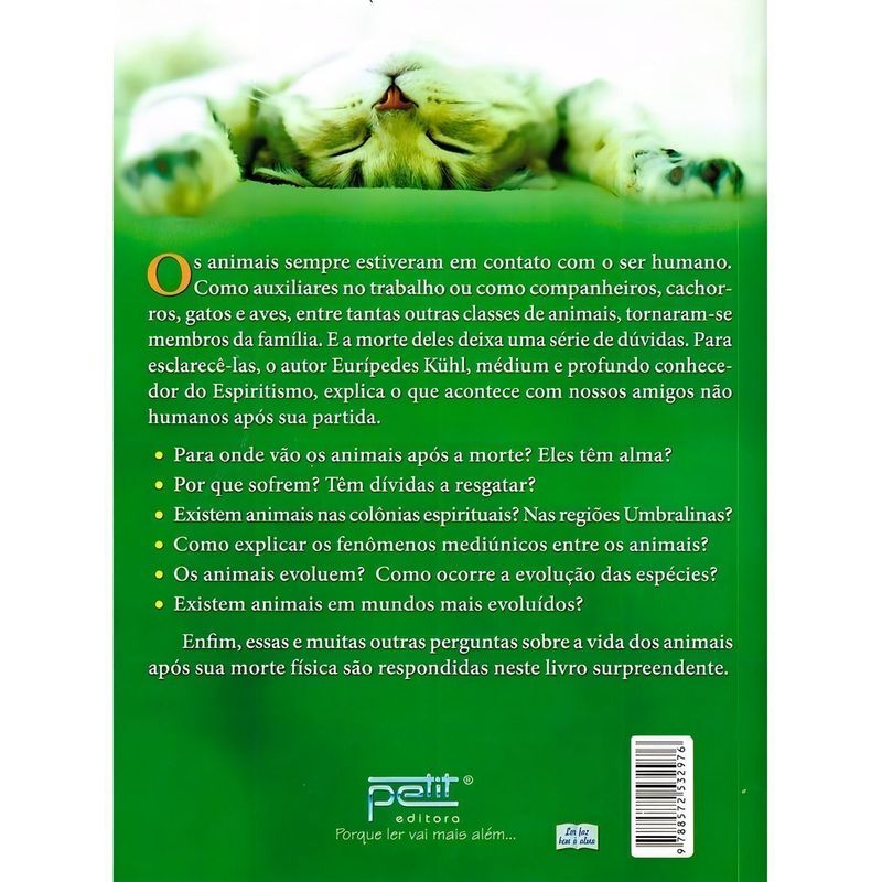 Qual o destino dos animais depois da morte? Eles têm alma? Como é a vida animal na espiritualidade? Os animais reencarnam? Por que alguns sofrem tanto enquanto outros levam uma existência repleta de regalias? Como é a vida animal em outros planetas?Eurípedes Kühl – médium, palestrante e escritor espírita renomado – apresenta a edição comemorativa de vinte anos, revista e ampliada, onde responde a essas e muitas outras perguntas sobre a natureza, a origem e a existência espiritual dos animais.