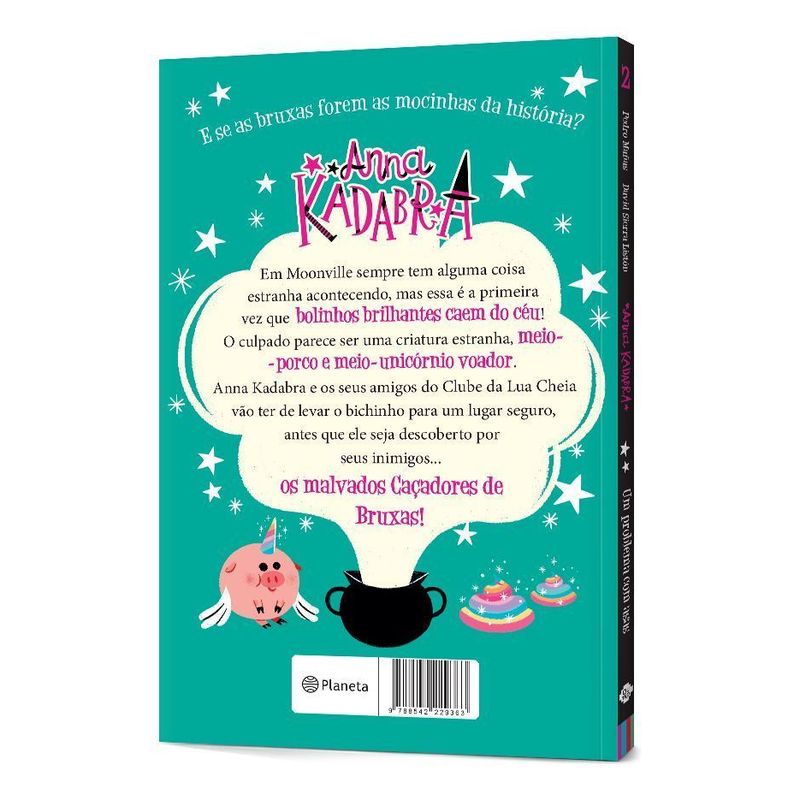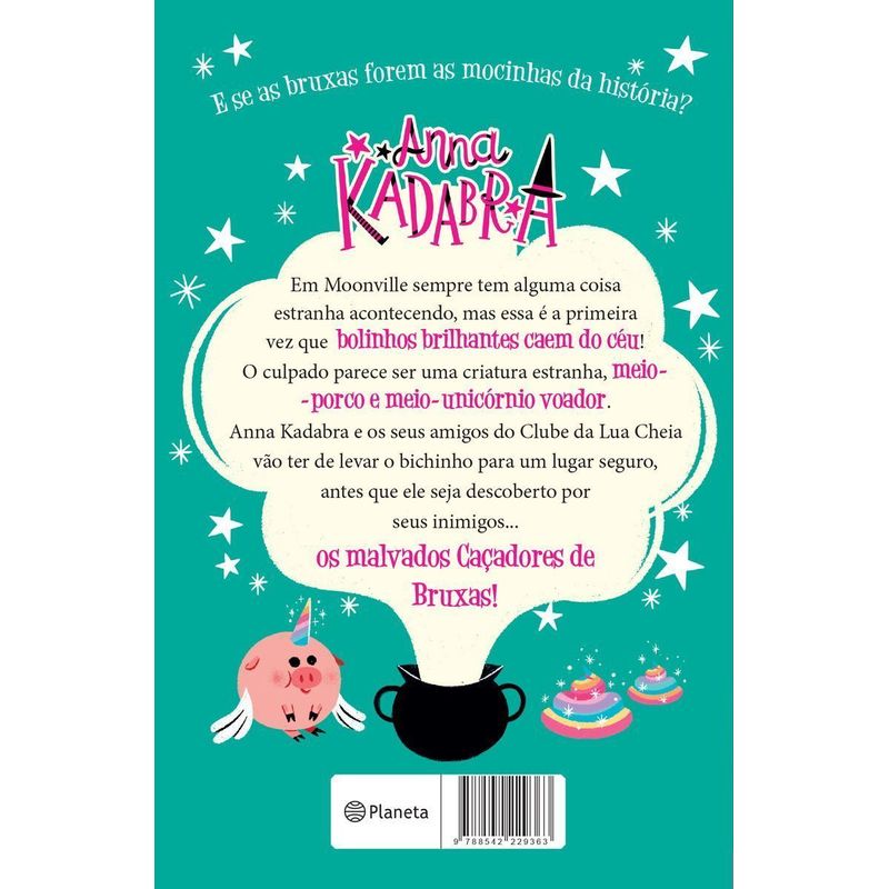 E se as bruxas forem as mocinhas da história? Em Moonville sempre tem alguma coisa estranha acontecendo, mas essa é a primeira vez que bolinhos brilhantes caem do céu! O culpado parece ser uma criatura estranha, meio-porco e meio-unicórnio voador. Anna Kadabra e os seus amigos do Clube da Lua Cheia vão ter de levar o bichinho para um lugar seguro, antes que ele seja descoberto por seus inimigos… os malvados Caçadores de Bruxas!