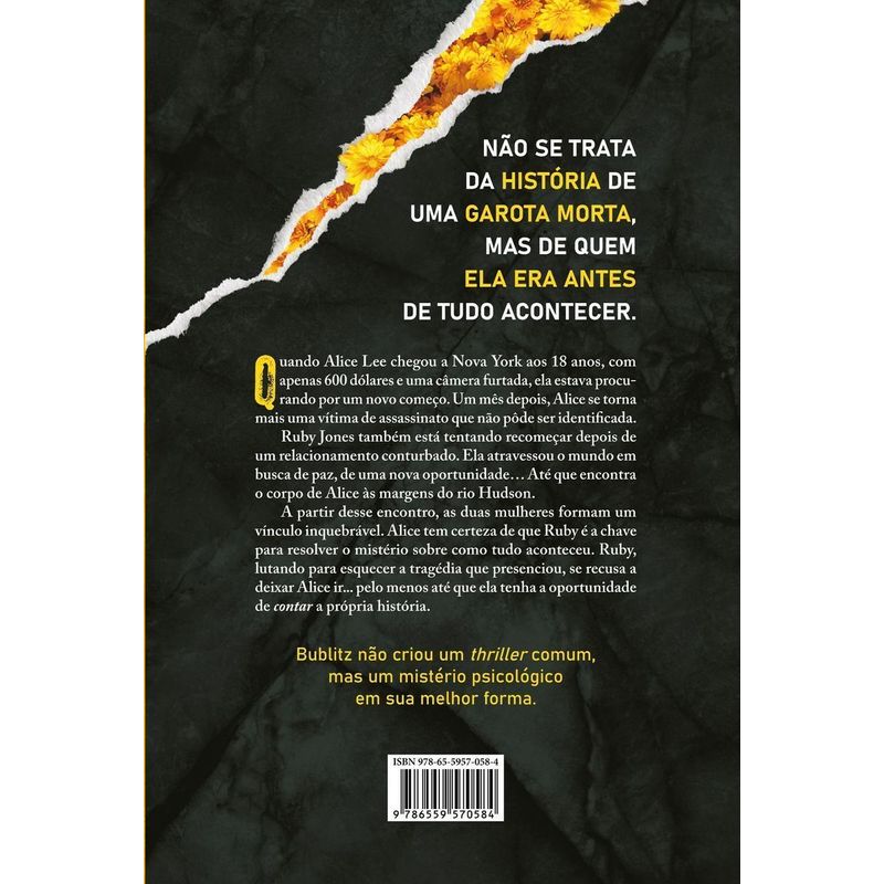 Quando Alice Lee chegou a Nova York aos 18 anos, com apenas 600 dólares e uma câmera furtada, ela estava procurando por um novo começo. Um mês depois, Alice se torna mais uma vítima de assassinato que não pôde ser identificada. Ruby Jones também está tentando recomeçar depois de um relacionamento conturbado. Ela atravessou o mundo em busca de paz, de uma nova oportunidade… até que encontra o corpo de Alice às margens do rio Hudson. A partir desse encontro, as duas mulheres formam um vínculo inquebrável. Alice tem certeza de que Ruby é a chave para resolver o mistério sobre como tudo aconteceu. Ruby, lutando para esquecer a tragédia que presenciou, se recusa a deixar Alice ir… pelo menos até que ela tenha a oportunidade de contar a própria história.