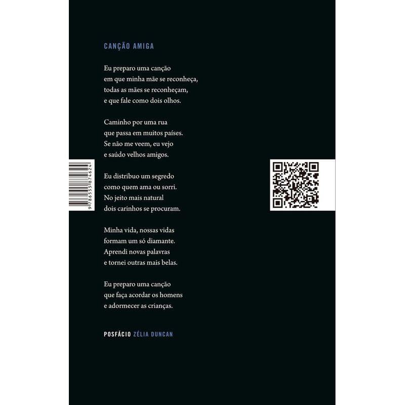 Reunião de poemas feita pelo autor no auge da forma, Antologia poética retorna em novo projeto, com posfácio de Zélia Duncan. Até 1962, quando esta antologia foi lançada, a obra poética de Carlos Drummond de Andrade, então com 60 anos, era formada pelos seguintes livros: Alguma poesia, Brejo das almas, Sentimento do mundo, José, A rosa do povo, Novos poemas, Claro enigma, Fazendeiro do ar, Viola de bolso, Viola de bolso novamente encordoada, A vida passada a limpo e Lição de coisas. Todos hoje são clássicos da nossa literatura.Para tornar esta coletânea algo especial, já bastaria o fato de o próprio Drummond haver selecionado os poemas que a compõem. Mas a maneira como ele a organizou, dividindo-a em seções temáticas, faz dela um verdadeiro mapa da sensibilidade do poeta, que indica os caminhos não apenas de sua produção passada, mas também do que ainda estava por escrever.São ao todo nove seções, com poemas sobre: 1) o indivíduo; 2) a terra natal; 3) a família; 4) os amigos; 5) o mundo social e político; 6) o amor; 7) a própria poesia; 8) divertimentos poéticos; 9) a condição existencial.A esta amplitude temática, rara em qualquer escritor, soma-se uma grande variedade formal e notável competência técnica, o que faz de Drummond, sem dúvida, um dos poetas mais completos da língua portuguesa de ontem e de hoje.As novas edições da obra de Carlos Drummond de Andrade têm seus textos fixados por especialistas, com acesso inédito ao acervo de exemplares anotados e manuscritos que ele deixou. Em Antologia poética, o leitor encontrará um posfácio da cantora e compositora Zélia Duncan, e também bibliografias selecionadas de e sobre Drummond; e a seção intitulada “Na época do lançamento”, uma cronologia dos três anos imediatamente anteriores e posteriores à primeira publicação do livro.Bibliografias completas, uma cronologia de vida e obra do poeta e as variantes no processo de fixação dos textos encontram-se disponíveis por meio do código QR localizado na quarta capa deste volume.