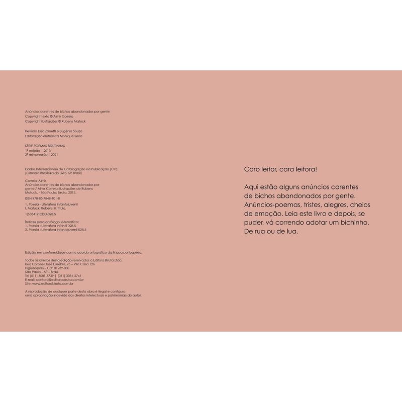 Título do livro : Anúncios carentes de bichos abandonados por gente