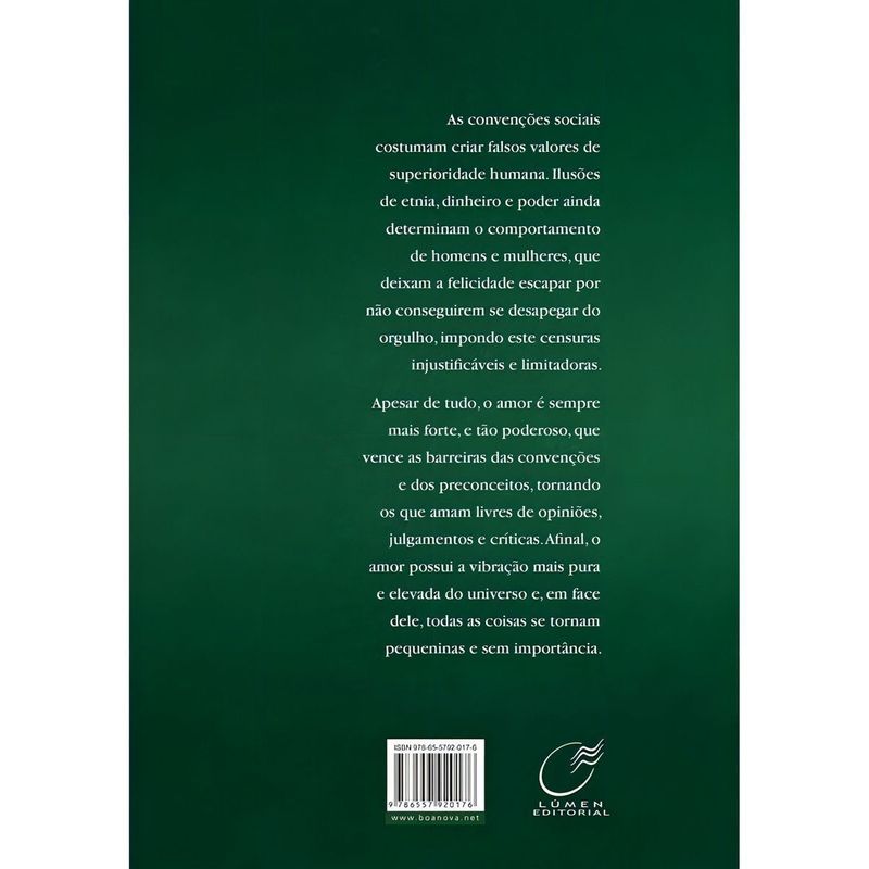 As convenções sociais costumam criar falos valores de superioridade do ser humano. Ilusões de etnia, dinheiro e poder ainda determinam o comportamento de homens e mulheres, que deixam a felicidade escapar por não conseguirem se desapegar do orgulho, que impõe censuras injustificáveis e limitadoras. Apesar de tudo, o amor é sempre mais forte, e tão poderoso, que vence as barreiras das convenções e dos preconceitos, tornando os que amam livres de opiniões, julgamentos e críticas. Afinal, o amor possui a vibração mais pura e elevada do universo e, em face dele, todas as coisas se tornam pequeninas e sem importância.