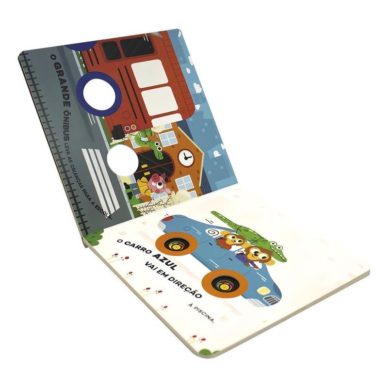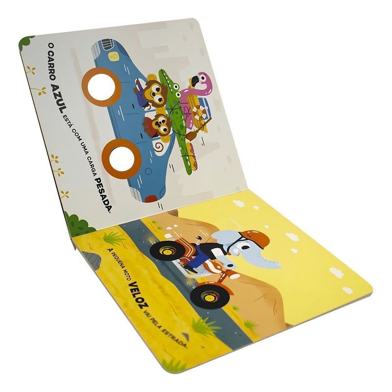 Do gigante ao pequenino, observe os veículos a ficarem cada vez menores. De um caminhão a um patinete, as crianças vão adorar virar as páginas e ver os veículos encolherem de tamanho.
