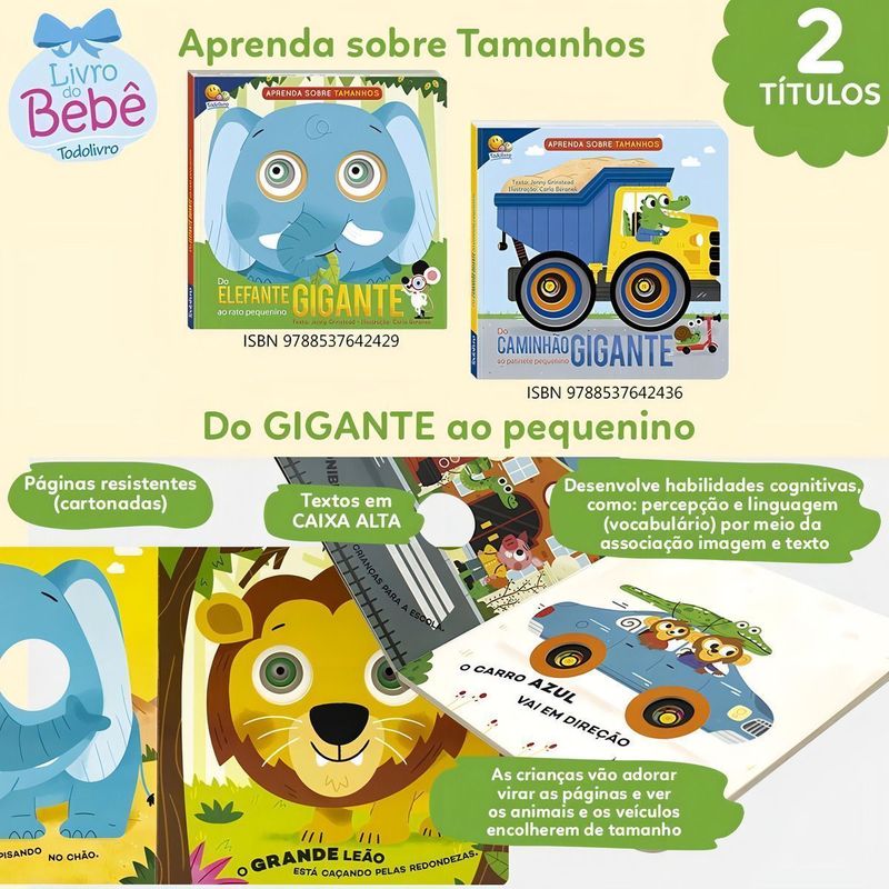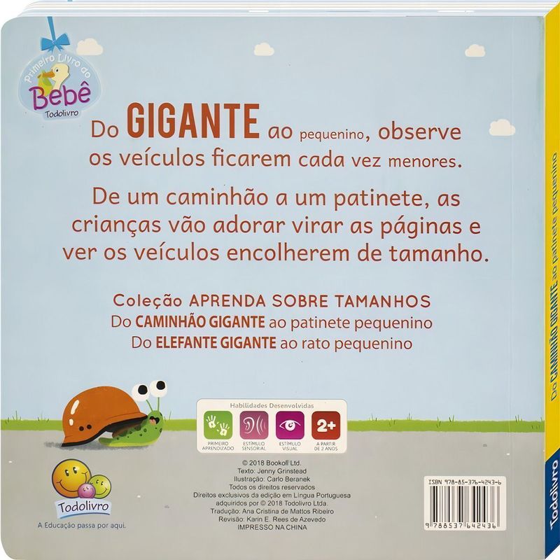 Título do livro : Aprenda sobre tamanhos: Do Caminhão Gigante ao Patinete Pequenino