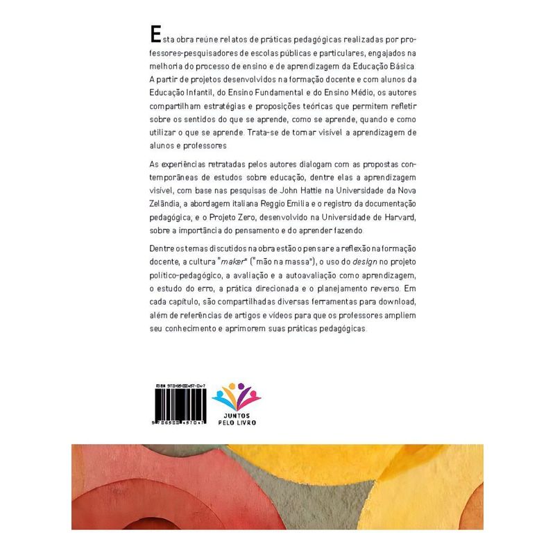 Esta obra reúne relatos de práticas pedagógicas realizadas por professores-pesquisadores de escolas públicas e particulares, engajados na melhoria do processo de ensino e de aprendizagem da Educação Básica. A partir de projetos desenvolvidos na formação docente e com alunos da Educação Infantil, do Ensino Fundamental e do Ensino Médio, os autores compartilham estratégias e proposições teóricas que permitem refletir sobre os sentidos do que se aprende, como se aprende, quando e como utilizar o que se aprende. Trata-se de tornar visível a aprendizagem de alunos e professores. As experiências retratadas pelos autores dialogam com as propostas contemporâneas de estudos sobre educação, dentre elas a aprendizagem visível, com base nas pesquisas de John Hattie na Universidade da Nova Zelândia; a abordagem italiana Reggio Emilia e o registro da documentação pedagógica; e o Projeto Zero, desenvolvido na Universidade de Harvard, sobre a importância do pensamento e do aprender fazendo. Dentre os temas discutidos na obra estão o pensar e a reflexão na formação docente, a cultura “maker” (“mão na massa”), o uso do design no projeto político-pedagógico, a avaliação e a autoavaliação como aprendizagem, o estudo do erro, a prática direcionada e o planejamento reverso. Em cada capítulo, são compartilhadas diversas ferramentas para download, além de referências de artigos e vídeos para que os professores ampliem seu conhecimento e aprimorem suas práticas pedagógicas.