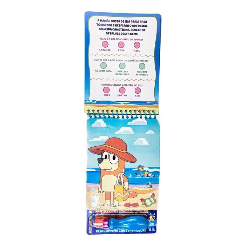 Livro de colorir inspirado na adorável série de animação “Bluey” que cativa o coração das crianças. Com ilustrações encantadoras dos personagens amados, este livro proporciona momentos de diversão e criatividade enquanto os pequenos fãs dão vida às aventuras da família Bluey.Dentro das páginas deste livro, as crianças encontrarão uma variedade de cenas emocionantes protagonizadas pela Bluey, sua família e seus amigos, esperando para serem preenchidas com cores vibrantes e alegres.