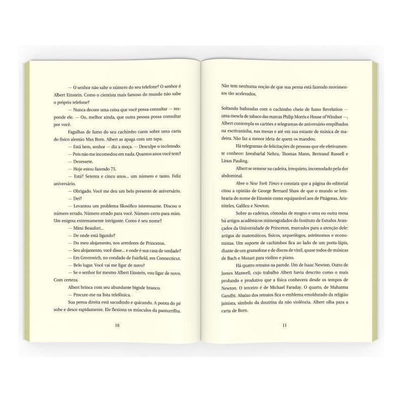 Mistura de romance e biografia traz novo olhar sobre a vida de um dos cientistas mais influentes do século XX Em 14 de março de 1954, uma estudante liga para o número errado e acaba engatando uma conversa com um dos cientistas mais renomados do mundo: Albert Einstein. Movido por sua característica curiosidade — a mesma que o fez questionar desde leis da física até convenções sociais e políticas —, Einstein estabelece com a jovem uma amizade que transformará sua vida de forma singular. Aqui quem fala é Albert Einstein parte dessa conversa que surge casualmente, e vai além das já conhecidas conquistas do teórico alemão para contar sua história de uma forma nunca antes vista. Em constante busca por seu lugar no mundo, Einstein passou a vida se adaptando a demandas pessoais e profissionais e à realidade a sua volta, uma existência tomada por amores, descobertas, medos e desafios. Dentre as adversidades enfrentadas, talvez a maior tenha sido o antissemitismo: já fortemente presente na comunidade científica e acadêmica mesmo antes da ascensão do nazismo, o preconceito o assombrou durante toda a sua vida. Com trechos factuais e pinceladas de ficção, a obra de R.J. Gadney faz uso de frases célebres, fotografias, postais, cartas e discursos do aclamado físico para apresentar um novo lado de Einstein. Turbulenta, charmosa e emocionante, esta mistura de biografia e ficção abrange quase cem anos de história europeia e mostra uma outra face do homem por trás da lenda.