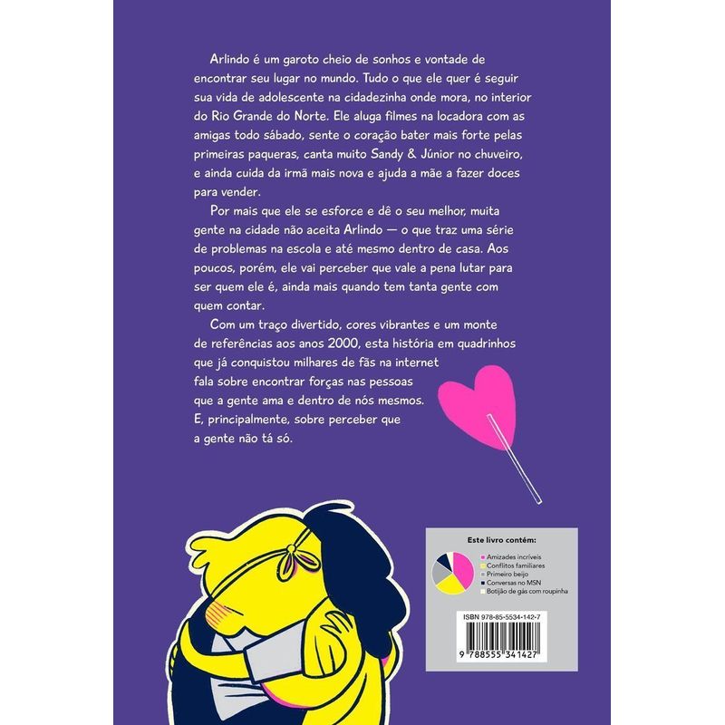Uma história sobre descobrir que a gente não tá só. Arlindo é um garoto cheio de sonhos e vontade de encontrar seu lugar no mundo. Tudo o que ele quer é seguir sua vida de adolescente na cidadezinha onde mora, no interior do Rio Grande do Norte. Ele aluga filmes na locadora com as amigas todo sábado, sente o coração bater mais forte pelas primeiras paqueras, canta muito Sandy & Júnior no chuveiro, e ainda cuida da irmã mais nova e ajuda a mãe a fazer doces para vender. Por mais que ele se esforce e dê o seu melhor, muita gente na cidade não aceita Arlindo — o que traz uma série de problemas na escola e até mesmo dentro de casa. Aos poucos, porém, ele vai perceber que vale a pena lutar para ser quem ele é, ainda mais quando tem tanta gente com quem contar. Com um traço divertido, cores vibrantes e um monte de referências aos anos 2000, esta história em quadrinhos que já conquistou milhares de fãs na internet fala sobre encontrar forças nas pessoas que a gente ama e dentro de nós mesmos.