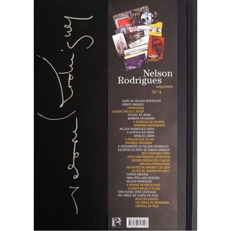 Em seu quarto título a Coleção Arquivinhos rende sua homenagem ao maior dramaturgo brasileiro de todos os tempos: Nelson Rodrigues. Entre as múltiplas facetas do turbilhão criador que foi Nelson – repórter policial, cronista, comentarista esportivo, romancista, contista, autor de telenovelas, teatrólogo e, até, “ator” -, a editora opta por se deter mais especialmente em sua obra dramatúrgica. Com coordenação do jornalista e poeta Claudio Mello e Souza e projeto gráfico de Victor Burton, o Arquivinho Nelson Rodrigues traz, em quatorze peças gráficas inseridas em invólucro criado pelo designer, textos assinados por Sábato Magaldi, Barbara Heliodora, Arnaldo Jabor, Armando Nogueira e Claudio Mello e Souza; um depoimento inédito de Fernanda Montenegro sobre o autor de Vestido de Noiva; um DVD com depoimentos de Nelson em áudio e vídeo; além de vasta iconografia, incluindo fac-símiles.