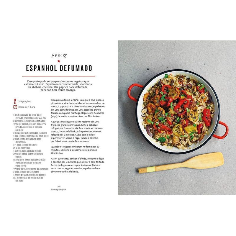 O arroz compõe a alimentação básica de mais da metade da população mundial. Embora seja um ótimo acompanhamento em qualquer refeição, ele não precisa ser apenas coadjuvante. Para surpreender nas refeições diárias, esse livro traz mais de 70 receitas com influências étnicas, ingredientes frescos e combinações inovadoras de texturas, para café da manhã, almoço, lanche e jantar, usando todas as variedades desse cereal. Inclui um guia com tipos de arroz e modos de cozimento, apontando as características de cada espécie. Os capítulos dividem-se em “Saladas e bowls”, “Sopas e petiscos”, “Pratos principais”, “Acompanhamentos” e “Sobremesas e guloseimas”. Entre as opções de dar água na boca, destacam-se a refrescante Salada de berinjela com molho de romã, o Petisco temperado de flocos de arroz, ideal para acompanhar drinques, a substanciosa Torta russa coulibiac de salmão, a Abóbora recheada com grão-de-bico e arroz, boa pedida para vegetarianos, o exótico Bulgogi bibimbap coreano e delícias doces, como o Sorvete de arroz com frutas vermelhas e o Bolinho de risoto doce.