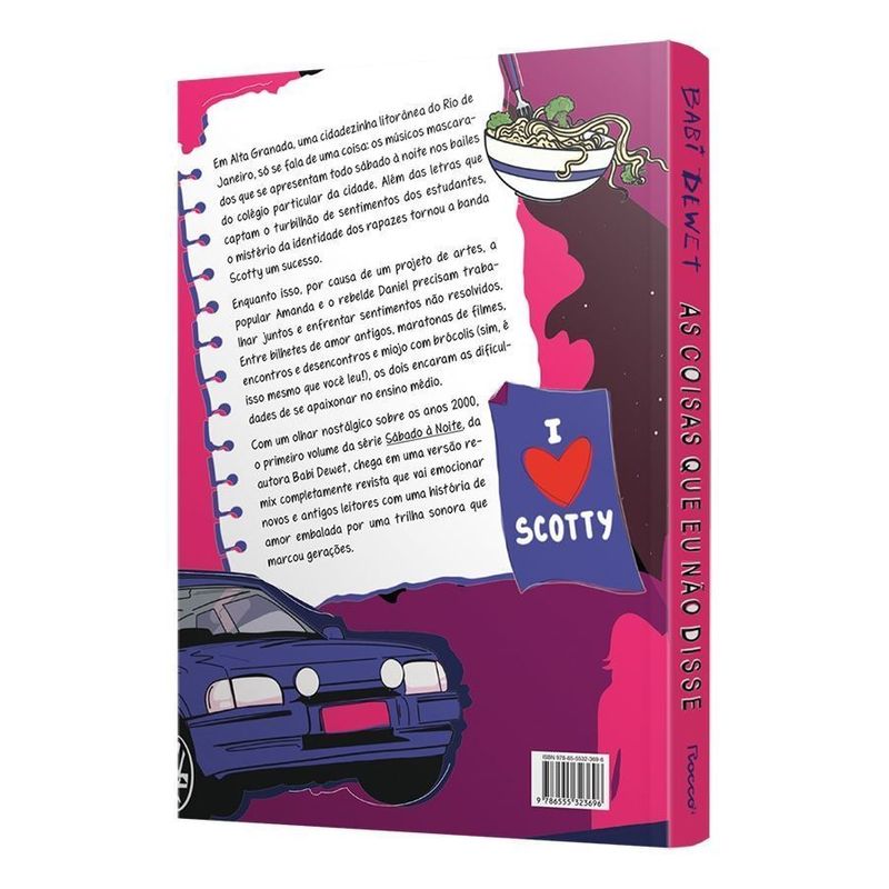 “Amanda é a garota mais bonita e popular do colégio. Decidida e muito fiel às amigas, conquistou a duras penas uma reputação impecável desde o nono ano. Daniel é tímido e sensível, com um lado rebelde que nem sempre mantém sob controle. Sempre rodeado pelo grupinho de amigos marotos que vive causando confusão no colégio, não poderia ser menos popular. Quando a professora de artes determina que os dois precisam fazer um trabalho em dupla, Amanda e Daniel descobrem que são mais parecidos do que achavam. Uma história cheia de sentimentos não ditos que os dois compartilharam anos antes vem à tona, e tudo que pensavam sobre popularidade e a hierarquia social do colégio é posto à prova. E por falar em professores que sem querer criam situações inusitadas para os alunos… O diretor da escola, decidido a promover bailes com música ao vivo todos os sábados, convida uma banda composta por músicos mascarados para tocar. Só que as letras cantadas pelo grupo misterioso parecem dizer muito sobre os sentimentos confusos de Amanda… Como isso pode ser possível? E, afinal, quem são os músicos mascarados de sábado à noite? Com um olhar nostálgico sobre os anos 2000, o primeiro volume da série Sábado à Noite, da autora Babi Dewet, chega em uma versão remix completamente revista que vai emocionar novos e antigos leitores com uma história de amor embalada por uma trilha sonora que marcou gerações. “