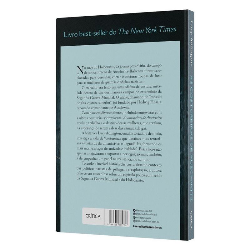Costureiras aprisionadas faziam vestidos para as mulheres dos oficiais nazistas. A história real de mulheres judias que, para sobreviver, costuravam em uma oficina de moda dentro de Auschwitz, instalada pela esposa do comandante do campo de concentração. No auge do Holocausto, 25 jovens presidiárias do campo de concentração de Auschwitz-Birkenau foram selecionadas para desenhar, cortar e costurar roupas de luxo para as mulheres de guardas e oficiais nazistas. O trabalho era feito em uma oficina de costura instalada dentro de um dos maiores campos de extermínio da Segunda Guerra Mundial. O ateliê foi fundado por Hedwig Höss, a esposa do comandante de Auschwitz. Com base em diversas fontes, incluindo entrevistas com a última costureira sobrevivente, As Costureiras de Auschwitz revela o trabalho e o destino dessas mulheres que cerziam, na esperança de serem salvas das câmaras de gás. Lucy Adlington investiga a vida de “costureiras que desafiaram as tentativas nazistas de desumanizá-las e degradá-las, formando os mais incríveis laços de amizade e lealdade”. Esses laços não apenas as ajudaram a suportar a perseguição, mas, também, a desempenhar um papel na resistência no campo. Assim, a autora oferece um novo olhar sobre um capítulo pouco conhecido da Segunda Guerra Mundial e do Holocausto.