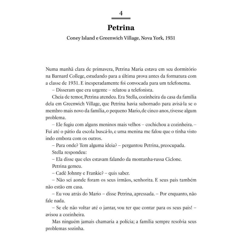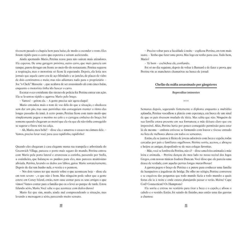 Quatro mulheres. Quatro passados. Uma família. Quem vai cuidar dos “negócios” quando os homens vão para a guerra? Filomena, Amie, Lucy e Petrina são muito diferentes, cada uma complexa e viva à sua maneira. Mas elas têm algo em comum: querem fugir do passado. Quando jovens, enfrentaram o abandono, a violência e a agressão, até encontrarem refúgio em uma rica família italiana que vive na Nova York dos anos 1940. Elas se casam, tornam-se madrinhas dos filhos umas das outras e passam a viver em um novo mundo, próspero e elegante. No entanto, quando a Segunda Guerra Mundial se intensifica e os Estados Unidos entram no conflito, os maridos dessas mulheres terão de partir para a batalha. Pelo bem e pela segurança da família, alguém terá de assumir os negócios. As madrinhas não poderão mais fazer vista grossa – pelo contrário, precisarão tomar o poder para proteger aquilo que é mais sagrado. Neste romance irresistível, Camille Aubray nos mostra por que vem chamando atenção de grandes nomes como Margaret Atwood. A história dessas mulheres que buscam por esperança, têm suas desavenças e encontram cumplicidade ao terem de lidar com aquilo que lhes é obscuro – um pouco como “Big Little Lies” – é uma jornada impetuosa, tensa, calorosa e perigosa pelo mundo do crime, mas com o brutal olhar feminino digno de Elena Ferrante, que muda tudo o que você já viu sobre histórias de máfia.