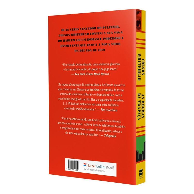DO AUTOR DUAS VEZES VENCEDOR DO PRÊMIO PULITZER DE FICÇÃO E GANHADOR DO NATIONAL BOOK AWARD Harlem, 1971. Ray Carney está de volta, mas dessa vez está pronto para deixar o mundo do crime para trás e se dedicar apenas à loja e à família… ao menos até sua filha lhe pedir ingressos esgotados para o show do Jackson 5. Agora, Carney se verá obrigado a ir atrás da ajuda de um ex-parceiro do crime e, em uma noite que parece não ter fim, os dois vão se ver em meio ao fogo-cruzado da guerra civil que toma as ruas do Harlem: um conflito entre o Exército de Libertação Negra e as forças do Estado. Mas só um leve passeio no mundo do crime não significa que Carney está de volta à ativa… certo? Uma continuação do extraordinário Trapaça no Harlem, As regras da trapaça é um retrato arrebatador e vertiginoso de um Harlem que se encontra em meio a um turbilhão efervescente de cultura, lutas por direitos civis, incêndios criminosos, corrupção e relações familiares das mais variadas, mas que permanece de pé apesar e por causa disso tudo. “As regras da trapaça é um tratado deslumbrante, uma anatomia gloriosa e intrincada do roubo, do golpe e do jogo.” — New York Times Book Review “Carney continua sendo um herói cativante e imoral; um não muito inocente. A Nova York de Whitehead também é magistralmente caracterizada. É inteligente, astuta e de uma sagacidade predatória.” — Telegraph
