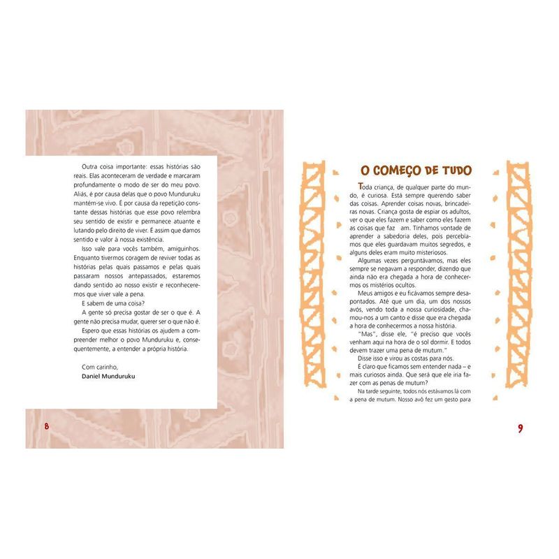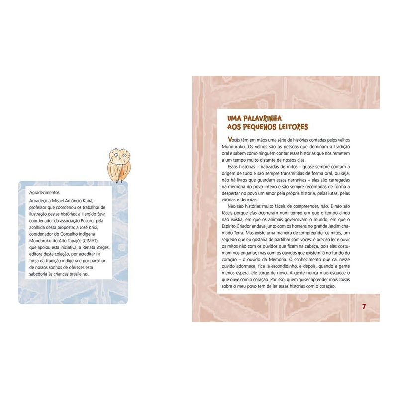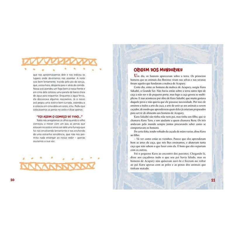Ilustrado pelas crianças da aldeia Katõ, este livro traz mitos contados pelos velhos da aldeia – histórias que nos remetem a um tempo muito distante de nossos dias e que são contadas e recontadas às crianças indígenas como forma de despertar nelas o amor pela própria história e pelas lutas de seu povo. Tocam o fundo do coração e são uma excelente oportunidade de integração com o universo infanto-juvenil indígena e seus valores.