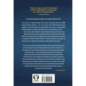 “Tudo o que a mente humana pode conceber e acreditar, ela pode conquistar.” — NAPOLEON HILL Um clássico de Napoleon Hill que tem mudado milhões de vidas! Sua mente é um talismã secreto. De um lado é dominado pelas letras AMP (Atitude Mental Positiva) e, por outro, pelas letras AMN (Atitude Mental Negativa). Uma atitude positiva irá, naturalmente, atrair sucesso e prosperidade. A atitude negativa vai roubá-lo de tudo que torna a vida digna de ser vivida. Seu sucesso, saúde, felicidade e riqueza dependem de qual lado você irá usar. Quando o pioneiro motivacional Napoleon Hill e o CEO milionário W. Clement Stone se uniram para formar uma das parcerias mais notáveis de todos os tempos, o resultado foi Atitude Mental Positiva, o fenômeno editorial que sugeriu ao mundo que, com a atitude certa, qualquer um pode realizar seus sonhos. “Há muitos anos, devido à minha própria estupidez e defeitos, perdi tudo o que era precioso para mim. Passei muito tempo em bibliotecas públicas porque tinham entrada franca — e eram aquecidas. Li tudo, de Platão a Peale, buscando uma mensagem que pudesse explicar onde eu tinha errado — e o que eu poderia fazer para salvar o resto da minha vida. Finalmente encontrei minha resposta em Atitude Mental Positiva, de Napoleon Hill e W. Clement Stone. (…) De um vagabundo sem dinheiro e sem uma única raiz, acabei me tornando o presidente de duas corporações e editor-executivo da Success Unlimited, a melhor revista do mundo na sua categoria. Também escrevi seis livros, e um deles, O maior vendedor do mundo, traduzido em quatorze idiomas e com mais de três milhões de cópias vendidas. Nada disso teria sido alcançado sem a aplicação diária dos princípios de sucesso e de vida que encontrei neste clássico.” Og Mandino