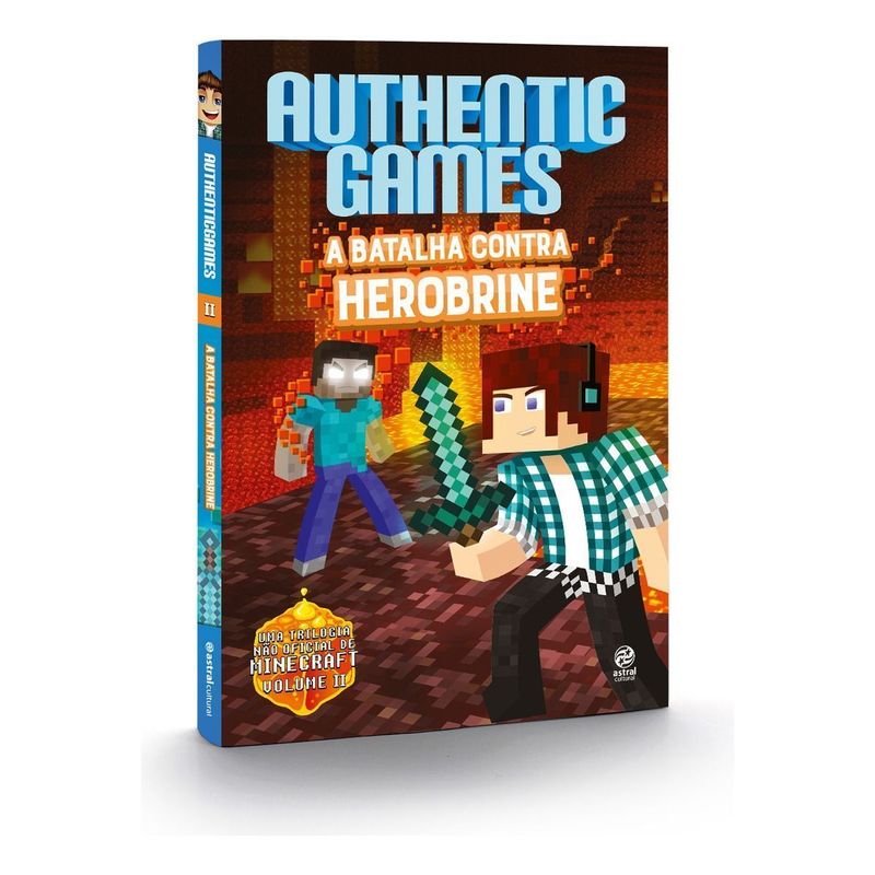 “Depois de ser resgatado de um terrível sequestro, AUTHENTICGAMES está de volta para proteger a Vila Farmer. Mas antes ele precisará encarar uma nova aventura para recuperar sua espada de diamante. Para isso, Authentic conta mais uma vez com a sua ajuda! Ao lado do herói, você – na pele do aventureiro Builder – e a esperta Nina vão partir para uma perigosa jornada até o Nether, onde os mobs esconderam a poderosa arma. Mas o maior desafio ainda está por vir: encontrar e derrotar Herobrine, que está por trás do roubo da espada e quer, junto com o Ender Dragon, acabar com o mundo da superfície. Preparado para mais um desafio? Então, mergulhe em A BATALHA CONTRA HEROBRINE, o segundo livro da trilogia AuthenticGames, uma história recheada de ação, mistérios e muitos enigmas para você decifrar.”
