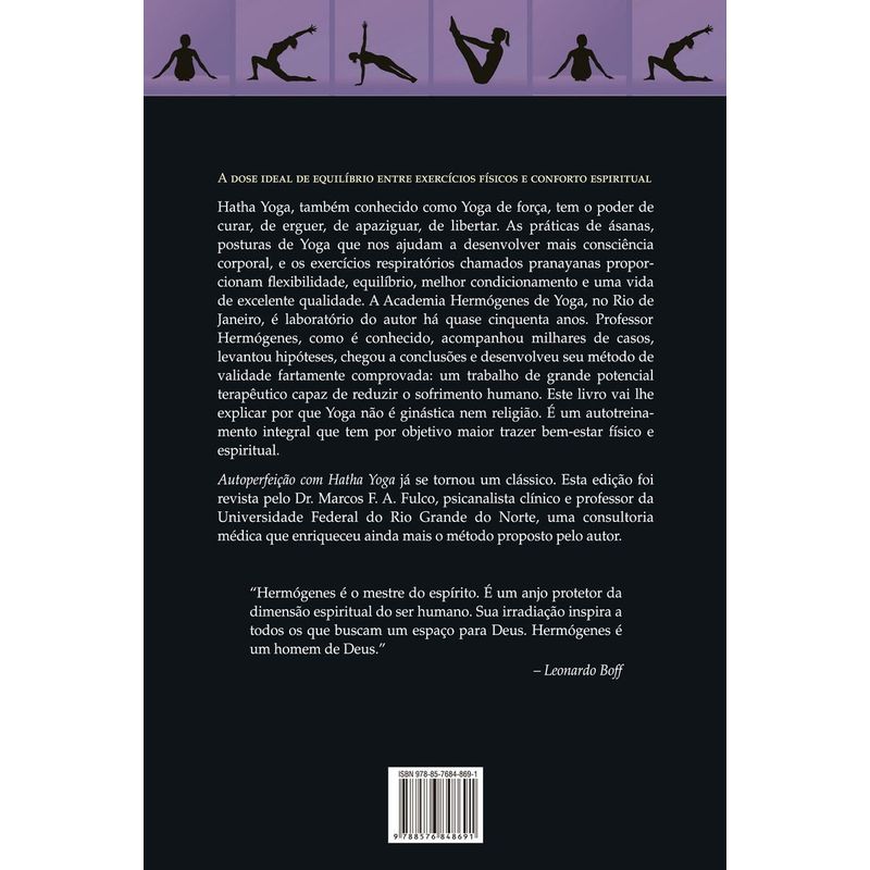 “Um guia para o entendimento e a prática do yoga, acompanhado de dicas para educação alimentar, relaxamento e atitude mental. Hatha Yoga, também conhecido como Yoga de força, tem o poder de curar, de erguer, de apaziguar, de libertar. As práticas de ásanas, posturas que nos ajudam a desenvolver mais consciência corporal, e os exercícios respiratórios chamados pranayanas proporcionam flexibilidade, equilíbrio, melhor condicionamento e uma vida de excelente qualidade. O professor Hermógenes, maior nome do Yoga no Brasil, acompanhou milhares de casos, levantou hipóteses, chegou a conclusões e desenvolveu seu método de validade fartamente comprovada: um trabalho de grande potencial terapêutico capaz de reduzir o sofrimento humano. Autoperfeição com Hatha Yoga vai lhe explicar por que Yoga não é ginástica nem religião. É um autotreinamento integral que tem por objetivo maior trazer bem-estar físico e espiritual. Autoperfeição com Hatha Yoga já se tornou um clássico. Esta edição foi revista pelo Dr. Marcos A.F. Fulco, psicanalista clínico e professor da Universidade Federal do Rio Grande do Norte, uma consultoria médica que enriqueceu ainda mais o método proposto pelo autor. “Hermógenes é o mestre do espírito. É um anjo protetor da dimensão espiritual do ser humano. Sua irradiação inspira a todos que buscam um espaço para Deus. Hermógenes é um homem de Deus.” – Leonardo Boff “