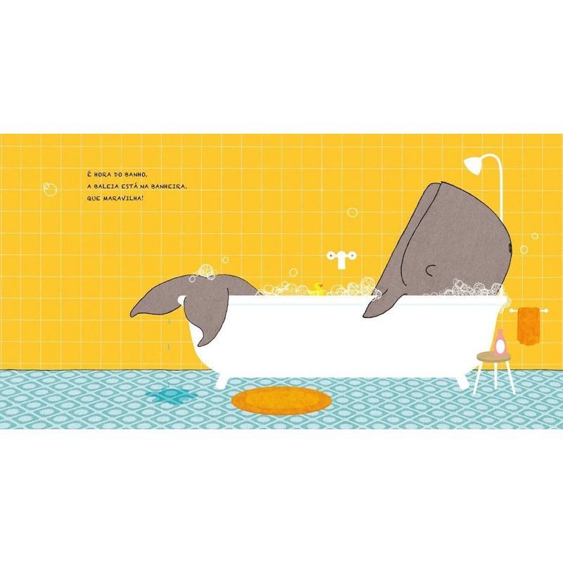 Uma baleia está na banheira, tomando tranquilamente seu banho… Até que uma tartaruga aparece com dor nas costas, e pula na banheira também! A baleia não se importa, mas o problema é que tem outros animais querendo um espacinho ali…