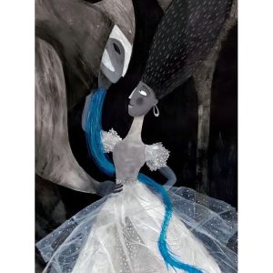 Barba Azul é um conto clássico recontado pelo francês Charles Perrault e publicado pela primeira vez sob o título “La barbe-bleue”, no livro Les Contes de ma mère l’Oye (Contos da Mamãe Gansa), em 1697. Nesta edição da Aletria, a autora e ilustradora argentina Anabella López faz uma releitura da obra de Perrault. De acordo com a autora, trata-se de “uma escolha estética inspirada pela energia animalesca do personagem, transmutado em entidade bicho-homem”. Por isso, o nome do personagem foi alterado para Barbazul. Ao criar a cena das esposas enterradas de Barbazul, colocando para cada corpo uma rosa vermelha, Anabella nos emociona e homenageia as mulheres vítimas de violência neste mundo.