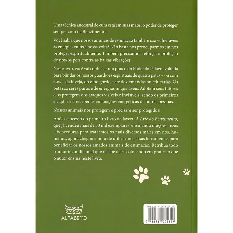Você sabia que nossos animais de estimação também são vulneráveis às energias ruins a nossa volta? Não basta nos preocuparmos em nos proteger espiritualmente, Também precisamos reforçar a proteção de nossos pets contra as baixas vibrações,Neste livro, você vai conhecer um pouco do Poder da Palavra voltada para blindar os nossos guardiões espirituais de quatro patas – ou com asas – da inveja, do olho gordo e até de demandas ou feitiçarias, Os pets são seres puros e de energias inigualáveis, Adotam seus tutores e os protegem dos ataques visíveis e invisíveis, sendo os primeiros a captar e a receber as emanações energéticas de outras pessoas,Nossos animais nos protegem e precisam ser protegidos!Após o sucesso do primeiro livro de Javert, A Arte do Benzimento, que já vendeu mais de 50 mil exemplares, ensinando orações, rezas e benzeduras para tratarmos os mais diversos males em nós, hu¬manos, agora chegou a hora de utilizarmos essas ferramentas para beneficiar os nossos amados animais de estimação, Retribua todo o amor incondicional que recebe deles colocando em prática o que o autor ensina neste livro,
