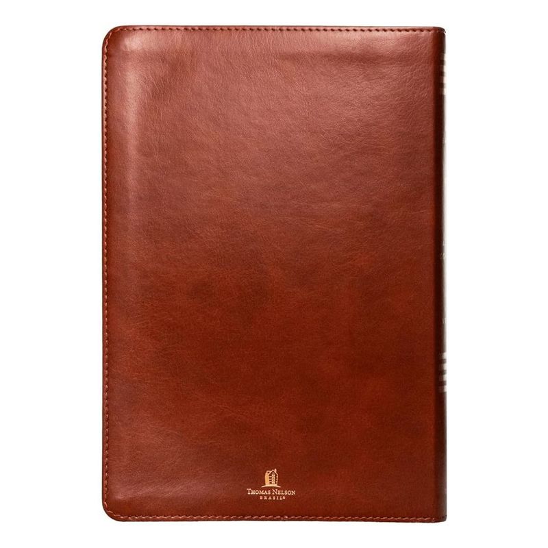 Título do livro : Bíblia Bilíngue Português e Inglês – ACF – Letra Normal – Capa Couro Soft Marrom