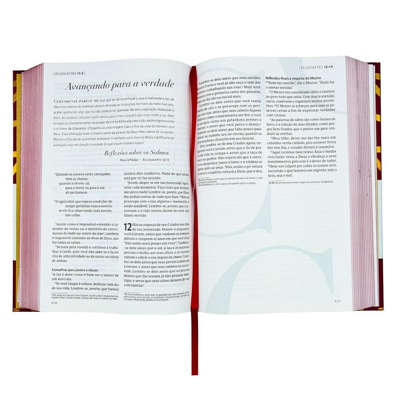 A Bíblia C. S. Lewis fornece leituras dos célebres clássicos espirituais de Lewis, incluindo “Cristianismo puro e simples”, “Cartas de um diabo a seu aprendiz”, “O grande divórcio”, “O problema da dor”, “Milagres”, “A anatomia de um luto”, “O peso da glória” e “A abolição do homem”, bem como suas cartas e poesias. A leitura de trechos relevantes da obra e das histórias de C. S. Lewis ao lado da Bíblia enriquecerá a meditação diária do leitor nas Escrituras. A versão da Bíblia C.S. Lewis de capa vermelha é a Nova Versão Transformadora (NVT), porém também está disponível na Nova Almeida Atualizada (NAA) e na Nova Versão Internacional (NVI). Além disso, conta com capa dura e fonte leitura perfeita para facilitar a visualização das passagens bíblicas e a meditação nos escritos de C.S. Lewis. “O que você tem em suas mãos é o trabalho assíduo de muitos estudiosos que, com grande habilidade, reuniram centenas de coisas que Jack [C.S. Lewis] escreveu em “As Crônicas de Nárnia”, ensaios acadêmicos, obras de apologética cristã e até mesmo em cartas para amigos e estranhos, para nos mostrar como até mesmo os caminhos tortuosos da vida e da literatura nos levam de volta à Fonte Única e Verdadeira, a Bíblia.” — Douglas Gresham