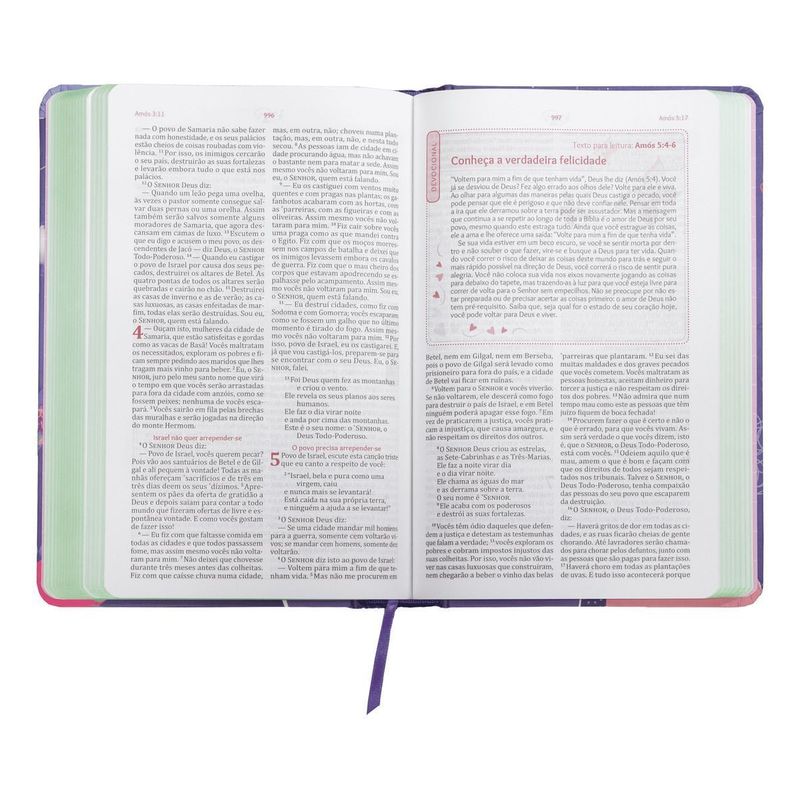 Uma Bíblia moderna e divertida para te acompanhar em todo lugar! Toda garota tem um montão de sonhos, planos e experiências, mas tudo fica muito melhor quando deixamos Deus e a Palavra fazerem parte de nosso mundo. A Bíblia da garota cristã contém notas, comentários, devocionais, dicas e vários outros recursos para ajudar você a ser uma garota de bem com a vida e segundo o coração do Pai. Ela possui texto na NTLH (Nova Tradução na Linguagem de Hoje), que traz as Escrituras de forma leve e acessível. Contém textos de Hayley DiMarco, autora best-seller reconhecida no meio jovem, além de diversos recursos para facilitar o estudo e entendimento da Palavra de Deus. Esta bíblia está disponível agora em capa dura, fitilho roxo e lateral verde, cheia de estilo! Características: Texto na NTLH (Nova Tradução na Linguagem de Hoje) Capa dura Pintura trilateral verde Fitilho colorido Letra tamanho tradicional Lombada costurada para total abertura Introdução aos livros da Bíblia Perfil de diversas “Garotas de Deus” que se destacaram na Bíblia Orações e devocionais Destaques coloridos para textos importantes Diagramação intuitiva