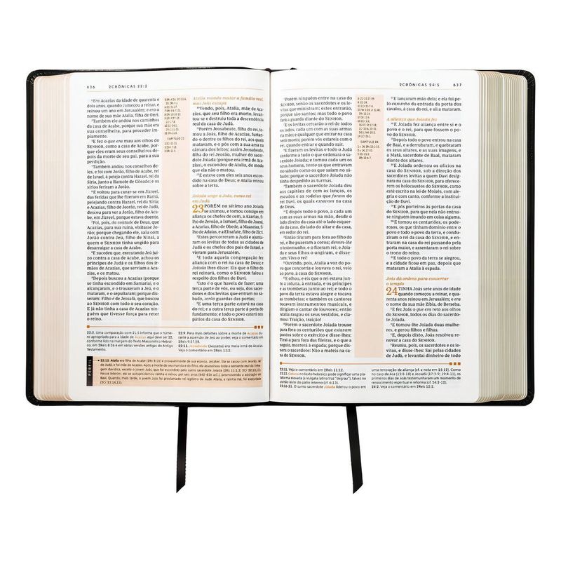 A tradução Almeida Corrigida Fiel (ACF) é conhecida por ser um texto clássico que preserva toda a tradição de João Ferreira de Almeida. Com base nisso, foram usados os melhores avanços em tipografia para desenvolver a Fonte Leitura Perfeita, que é exclusiva da Thomas Nelson e reflete esse rico legado de um texto fiel aos originais, revestido de autoridade e embasado nos manuscritos mais confiáveis. O resultado é uma letra exclusiva, clara e legível em qualquer tamanho. A Bíblia conta com: • Comentários bíblicos da King James Study Bible. • 5.700 comentários em notas no rodapé da página, com estudos confiáveis. • Referências cruzadas acompanhando o texto bíblico em coluna central. • Concordância bíblica abreviada da ACF vinculada à clássica concordância de Strong. • Índice temático de Cristo e dos Evangelhos; dos ensinos e ilustrações de Cristo; das parábolas e milagres de Jesus; das profecias messiânicas cumpridas em Cristo. • Índice temático de Paulo e suas cartas. • Índice temático das profecias sobre o fim dos tempos. • Tabela de moedas, pesos e medidas. • Calendário judaico. • Orações da Bíblia. • Índice dos comentários. • Diagramas e tabelas.