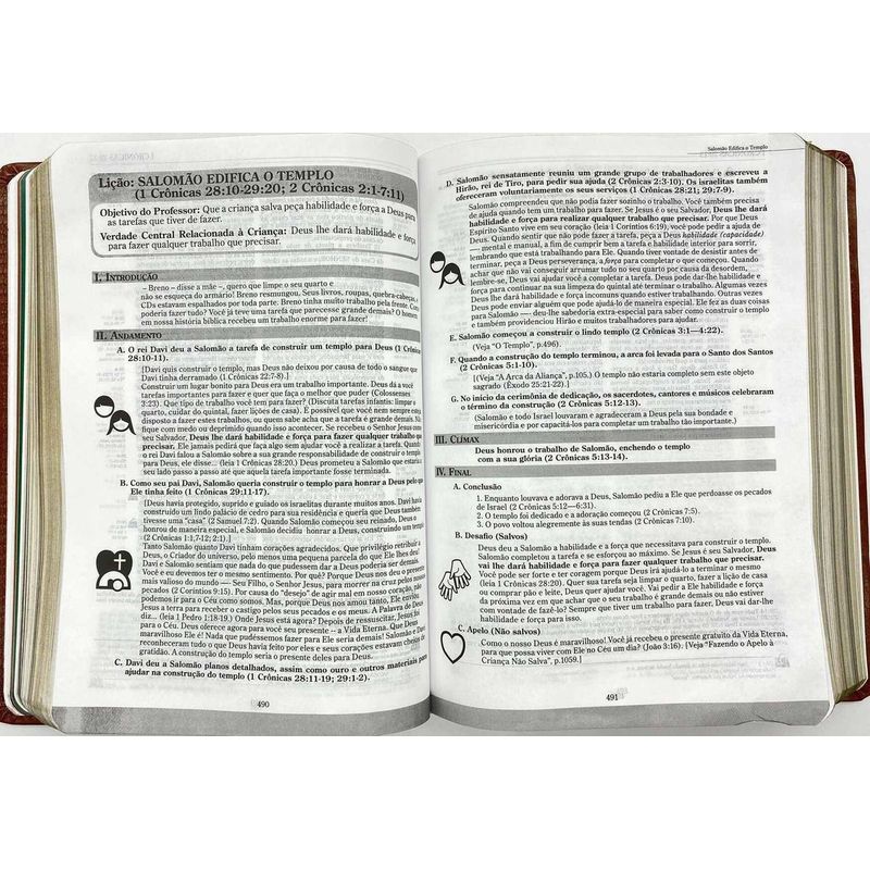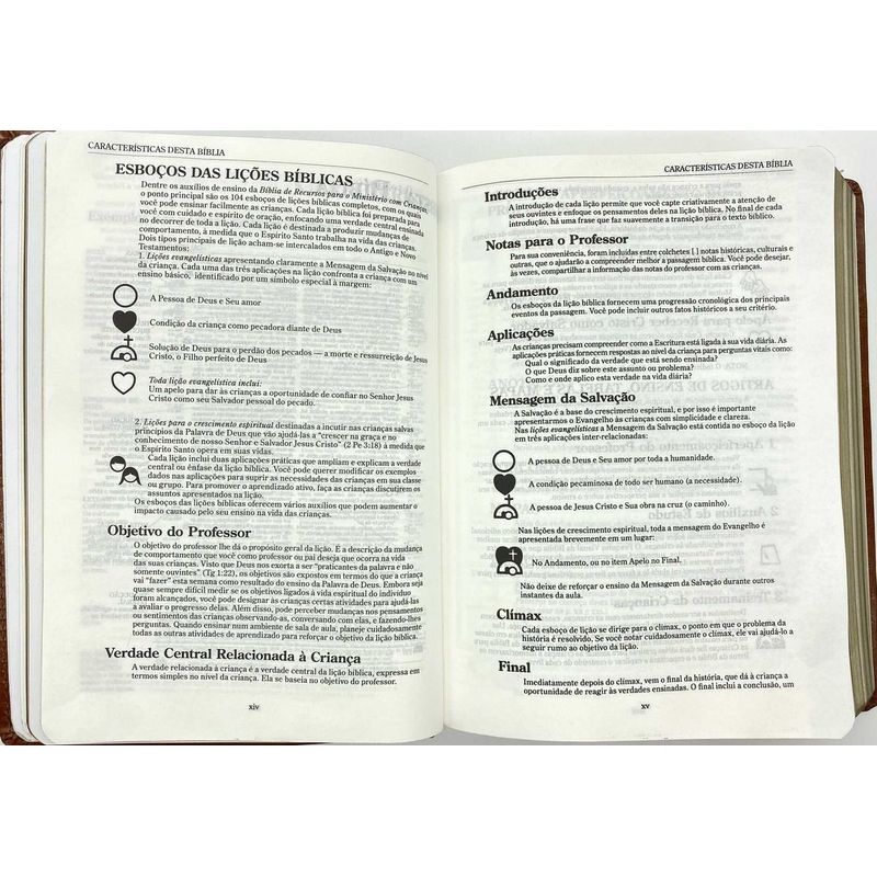 Entre eles estão: mais de uma centena de esboços de lições bíblicas, índice por assunto, pesquisa visual da Bíblia, artigos para aperfeiçoamento do professor, estudos simplificados para usar com as crianças, concordância bíblica, auxílios de estudo, mapas, tabelas especiais e muito mais, reunidas em um único volume. Elaborada em parceria com a APEC (Aliança Pró-Evangelização de Crianças), utilizando a tradução de Almeida, revista e atualizada, é sem dúvida a mais completa e eficiente ferramenta de auxílio aos pais, educadores e líderes, que se dispõem a compartilhar a palavra de Deus às crianças, e a ensiná-las que Jesus tinha um amor especial por elas.
