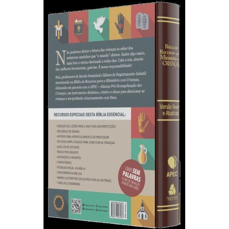 Pais, professores de Escola Dominical e líderes de Departamento Infantil encontrarão na Bíblia de Recursos para o Ministério com Crianças, elaborada em parceria com a APEC – Aliança Pró-Evangelização das Crianças, um instrumento dinâmico, criativo e eficaz para direcionar as crianças a um profundo relacionamento com Deus.