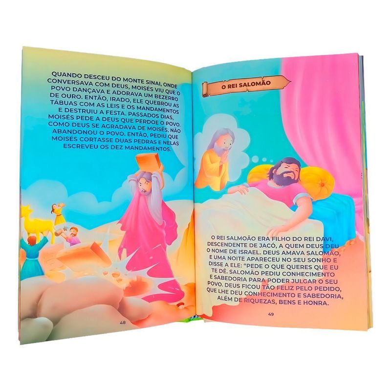 Bíblia infantil encantadora, especialmente desenvolvida para as crianças explorarem as histórias bíblicas de maneira divertida e envolvente. Com ilustrações coloridas e uma linguagem acessível, este livro proporciona uma introdução cativante aos ensinamentos e valores presentes na Bíblia. Dentro das páginas desta bíblia, as crianças encontrarão uma seleção cuidadosa de histórias bíblicas que abrangem desde o Antigo até o Novo Testamento. Desde a criação do mundo até os ensinamentos de Jesus, cada história é apresentada de forma atraente e adaptada para a compreensão infantil. As ilustrações vivas e expressivas dão vida às histórias bíblicas, permitindo que as crianças visualizem e se conectem com os personagens e eventos descritos. As imagens coloridas estimulam a imaginação e a curiosidade, incentivando as crianças a se envolverem de maneira mais profunda com as lições e os valores apresentados.